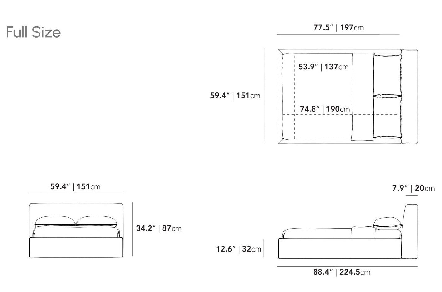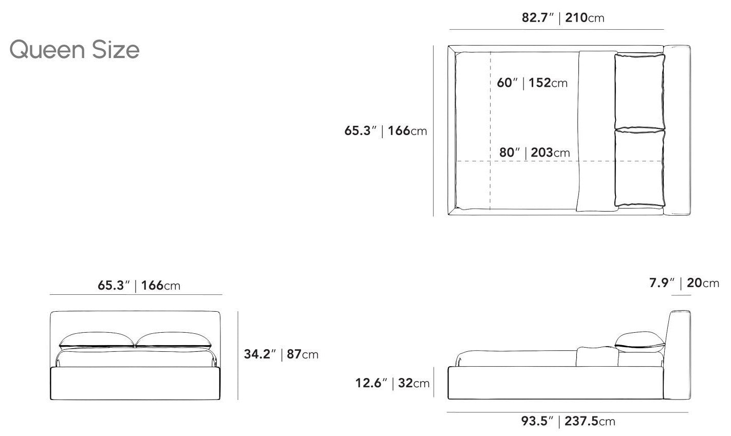 Le lit O2 est vendu en version cadre uniquement, ce qui signifie que l’achat comprend le cadre de lit et la tête de lit. Le matelas et les oreillers ne sont pas inclus.