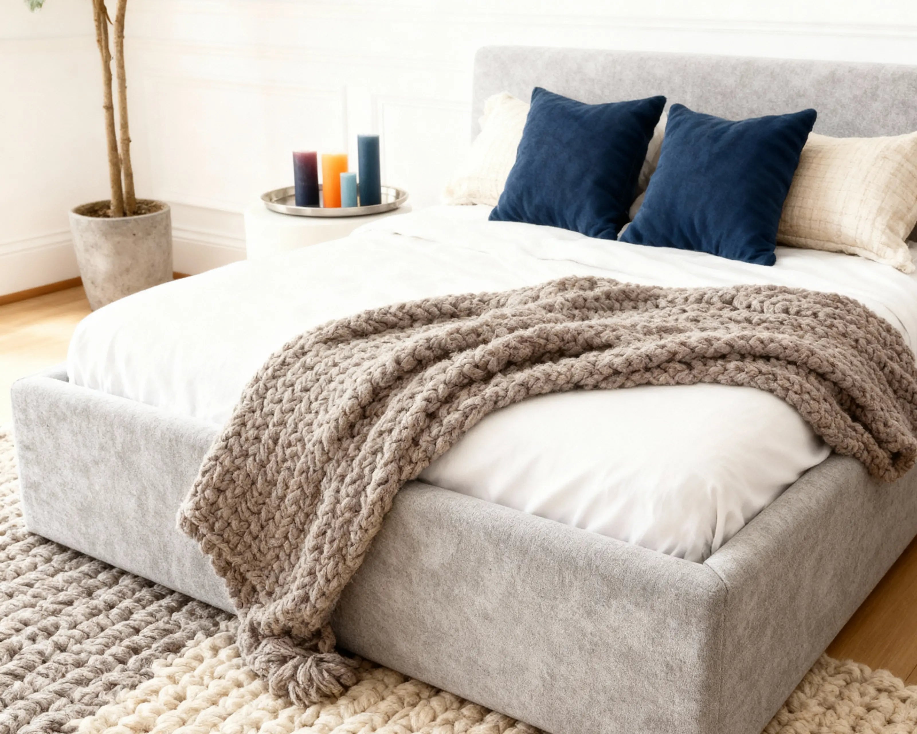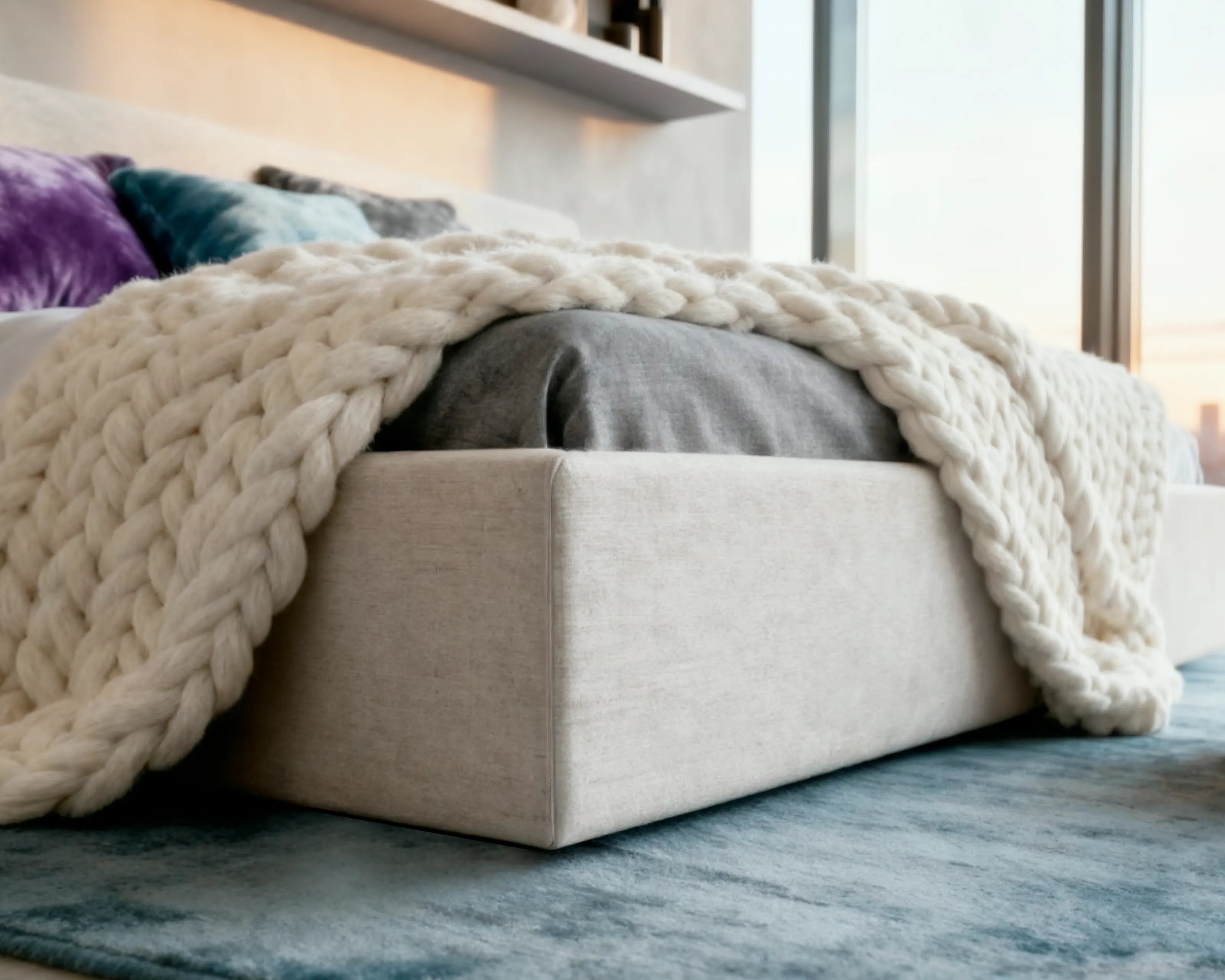 Le lit O2 allie design moderne et fonctionnalité intelligente. Sa structure minimaliste et angulaire présente un profil bas, pour une esthétique épurée et discrète. Son rembourrage en mousse haute densité, aux contours élégamment arrondis, offre l’équilibre parfait entre fermeté et confort.