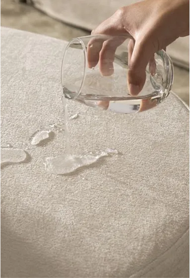 S8's Corduroy Velvet repels liquid. If a spill occurs, quickly soak up the spill with an absorbent towel. If marks remain, dampen a cloth with warm water and gently dab away stains.